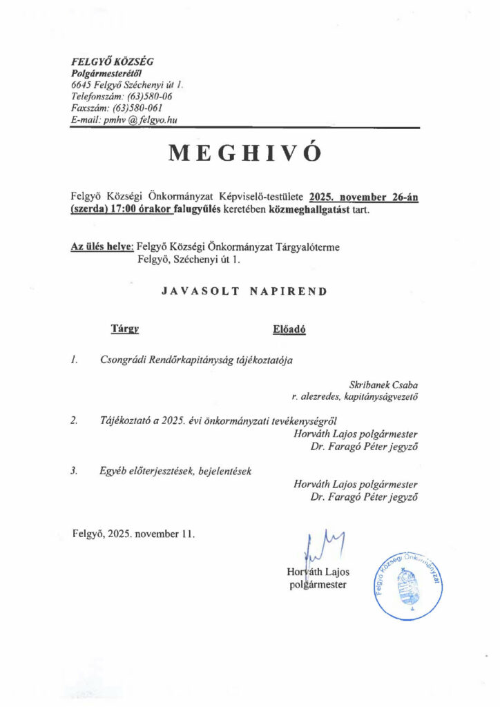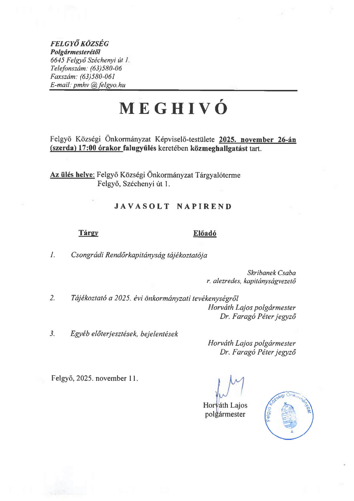 Tömörkényi Közös Önkormányzati Hivatal Felgyői Kirendeltsége – elérhetőség