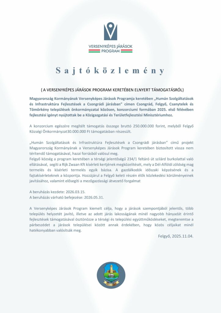 Tömörkényi Közös Önkormányzati Hivatal Felgyői Kirendeltsége – elérhetőség