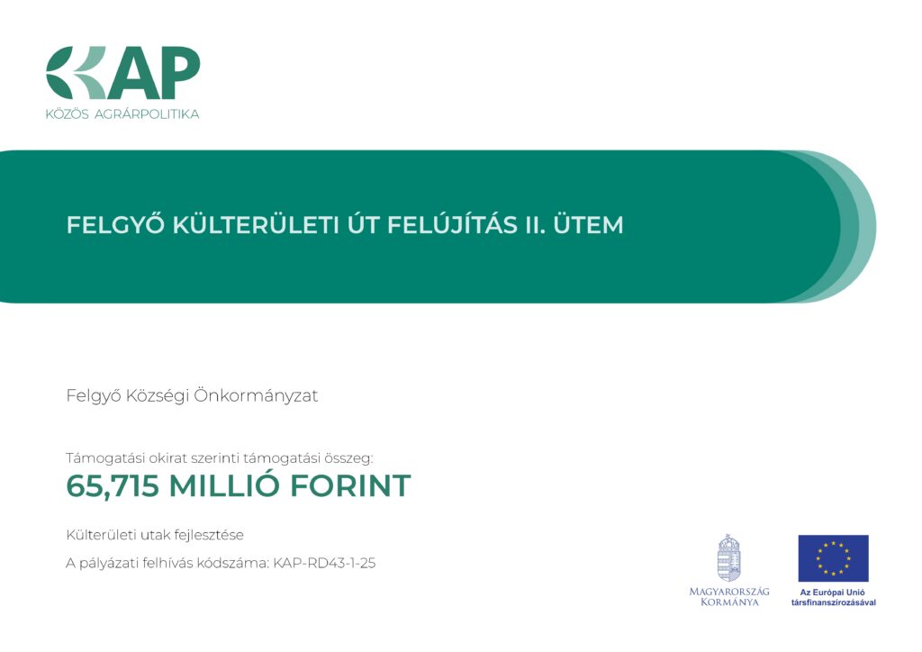 TOP-2.1.3-16-CS1-2021-00013 – „FELGYŐ BELTERÜLETI CSAPADÉK- ÉS BELVÍZELVEZETÉS FEJLESZTÉSE”